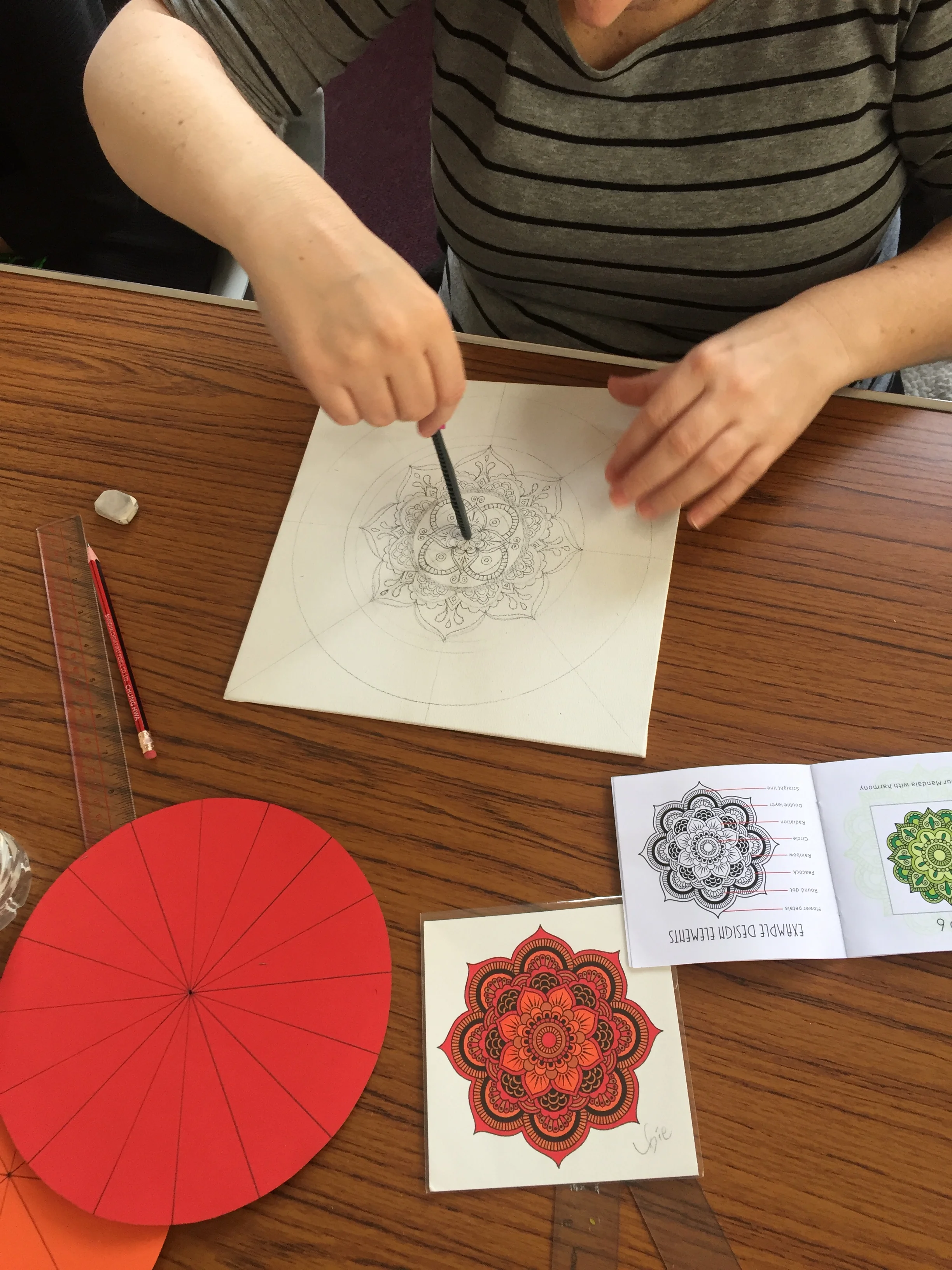 Learn how to draw your Unique Mandala Art work on 20/25 cm sq canvas or high quality watercolour paper. in the morning. Following a short break for lunch (great food available at this venue)...we will then go on to teach you colour wheel theory blending colours and washes to complete your work.